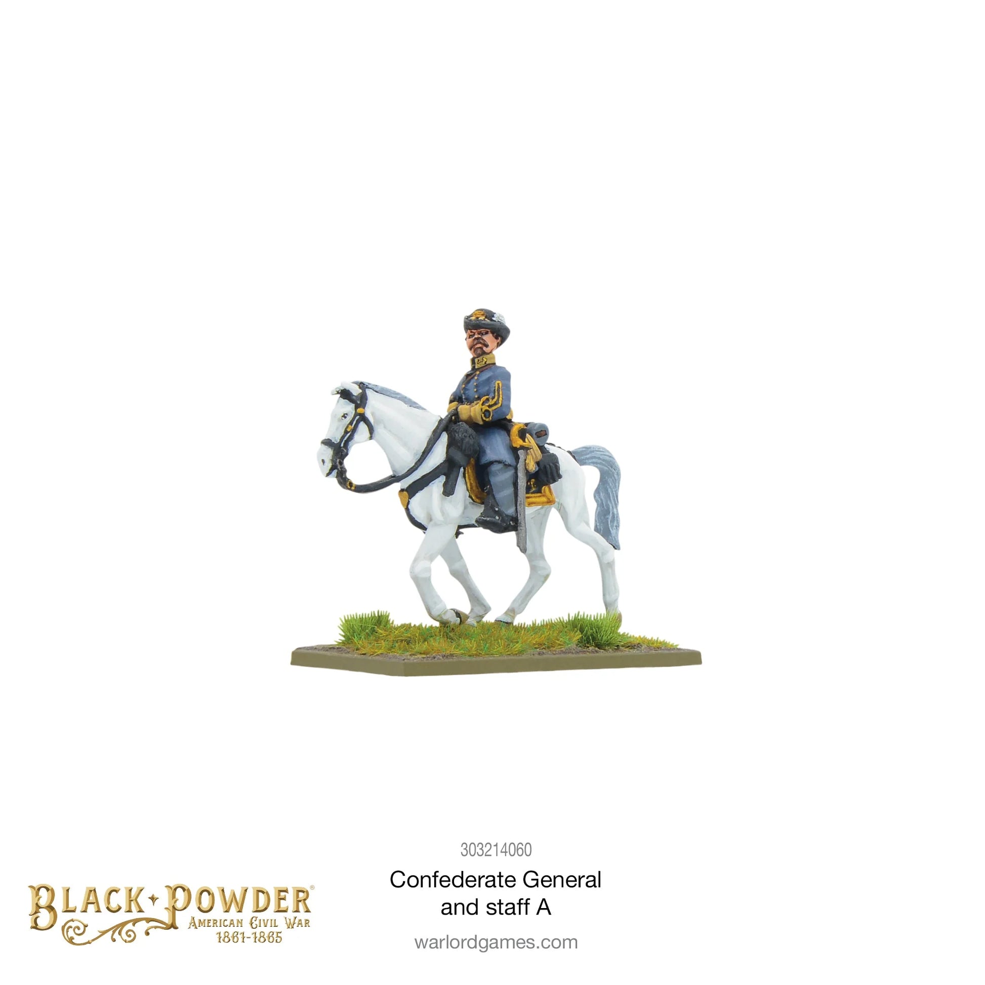 Leading his brave southern troops against the forces of the Union this General of the Confederacy atop his faithful steed is attended by his staff.