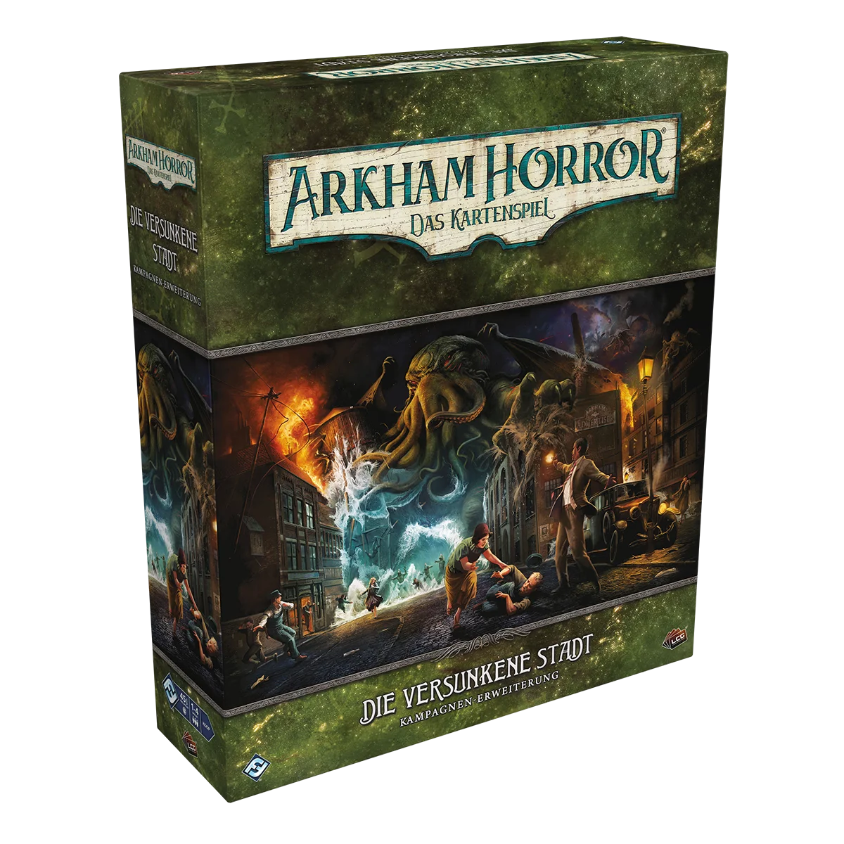 In der Kampagnen-Erweiterung Die versunkene Stadt zu Arkham Horror: Das Kartenspiel erkunden 1–4 Ermittler die mysteriöse, aber auch gefährliche Stadt R’lyeh, die sich aus den Tiefen des Meeres erhebt. Ihr wagt euch in grabähnliche Ruinen hinein, klettert zu den Fundamenten der verfallenen Stadt hinab, durchkämmt den Meeresboden nach fremdartigen Artefakten, durchquert Kammern mit rätselhaften Maschinen und enthüllt eine Geschichte, die vor uralten Zeiten zusammen mit der Stadt versunken ist. Dabei erlebt ihr eine einzigartige Geschichte, die sich je nach gewählten Ermittlern ändert, und die in einem dramatischen Kampf gegen Cthulhu selbst gipfelt!