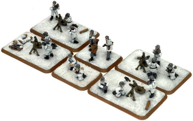 Contains one Command Rifle team, one Observer Rifle team, two Mortar section each with two Tampella M/35 81mm mortar teams, one Small three-hole base, one Small two-hole base & four Medium four-hole bases