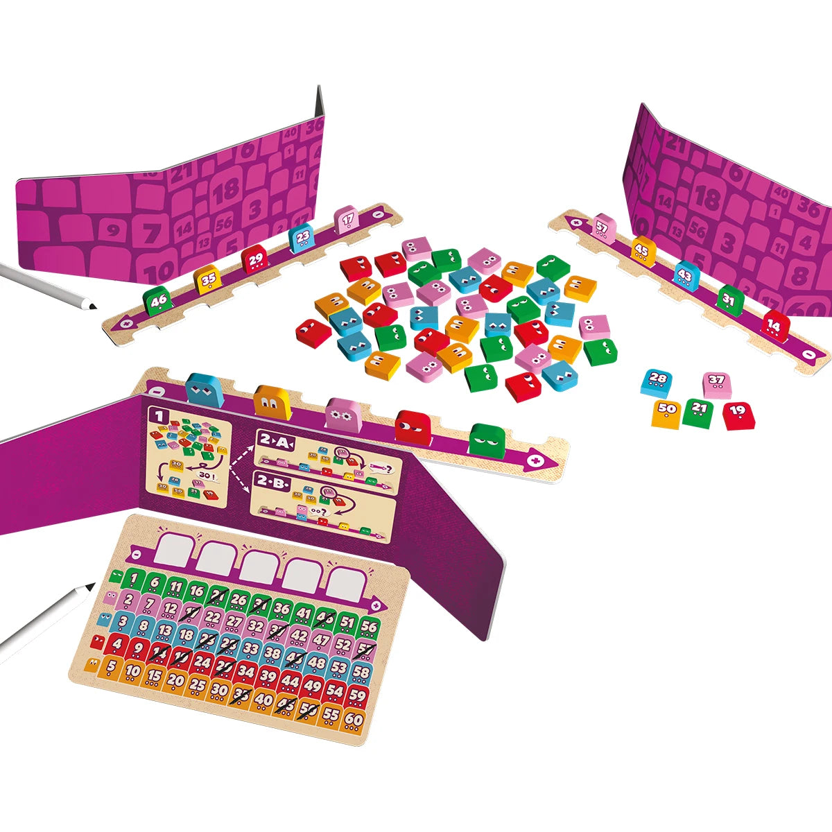 Im fluffigen Familienspiel Got Five! versucht ihr, die fünf Zahlen zu erraten, die verdeckt vor euch stehen. Klingt einfach? Ist es auch, zumindest wenn ihr die richtigen Fragen stellt und die Zahlensteine aus der Mitte clever nutzt, um diese mit euren Zahlen zu vergleichen oder einzuordnen. Wer die richtigen Schlüsse zieht und sich der eigenen Zahlen sicher ist, ruft schnellstmöglich „Fünf und fertig!“, um das Spiel zu gewinnen. Ein einziger Fehler raubt euch allerdings die Chance auf den Sieg, also überlegt gut, wie viel Risiko ihr eingehen wollt!