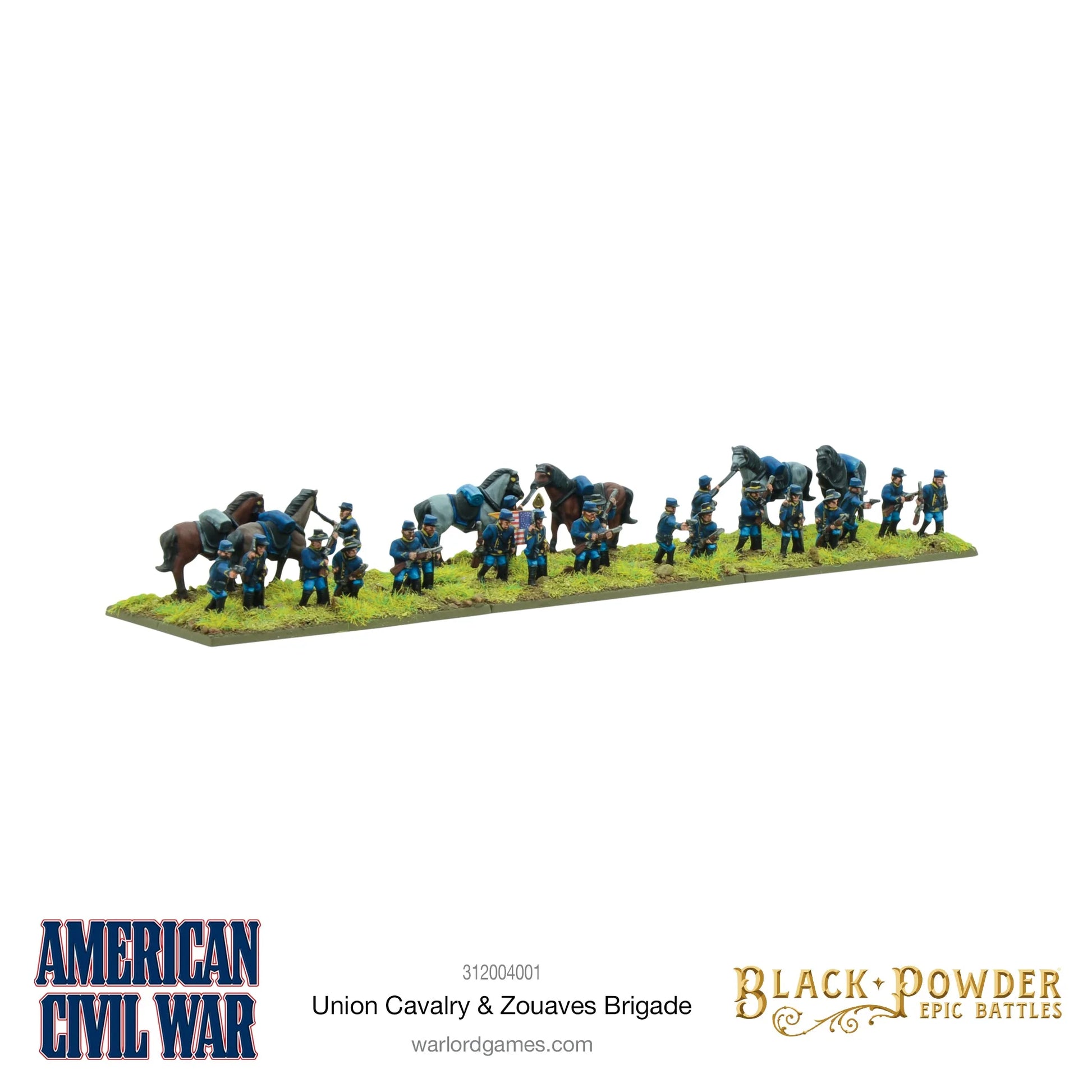 This plastic set provides enough models to field a complete Union brigade comprising one zouaves regiment of 100 men, a regiment of cavalry, a regiment of dismounted cavalry and a regiment of skirmishers.