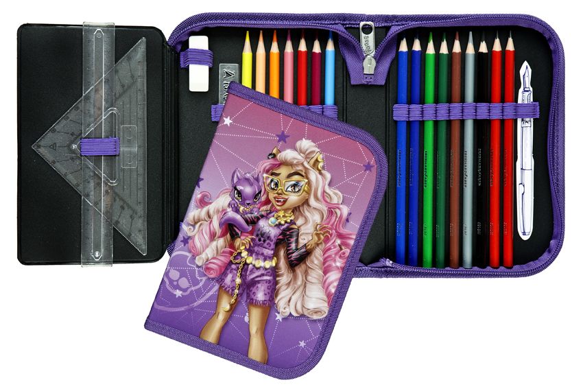 mit Eberhard Faber Markenfüllung, 14 Buntstifte, 2 Bleistifte, Radierer, 17 cm Lineal, Geodreieck, Spitzer, 2 ABC Schablonen, Stundenplan (Buntstifte+Bleistifte aus 52% recyceltem Material), Polyester
