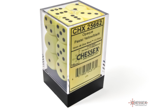 Opaque 16mm d6 Pastel Yellow/black Dice Block™ (12 dice)