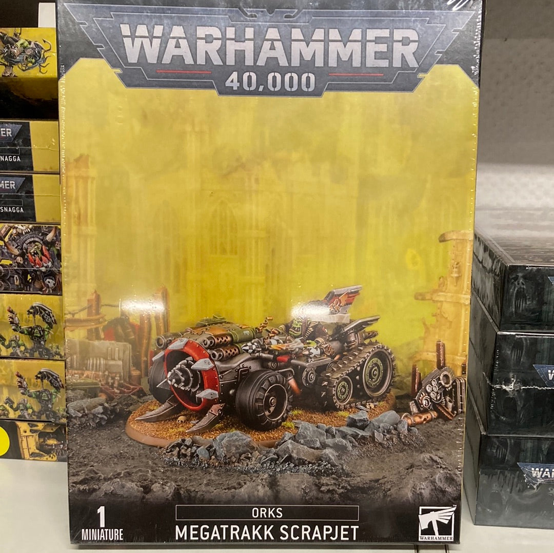 Dieser mehrteilige Kunststoffbausatz enthält alle Teile, die zum Bau eines Megatrakk Scrapjet benötigt werden. Basierend auf dem Rumpf eines abgestürzten Ork-Flugzeugs ist der Scrapjet im Grunde eine Metallröhre, die mit Dingen ausgestattet wurde, die Feinde sterben lassen - eine an der Nase montierte Raket'nkanona¨ (die über einen Munitionsgürtel mit Raketän versorgt wird! ), Raketen, die so gebaut werden können, dass sie halb abgefeuert werden können, ein an der vorderen Turbine montierter Bohrer mit dazugehörigem Stachelrammä, eine Fette Zwillingswumme vorne und eine weitere Fette Zwillingswumme, die von einem Grot-Heckschützen bedient wird. Obwohl die Tragflächen bei dem schrecklichen Unfall, bei dem der Scrapjet zu Boden ging, abgerissen wurden, befinden sich das Höhen- und das Querruder noch am Rumpf - denn sie sehen cool aus, und das ist es, was einen fliegenden Jungen ausmacht! Der Pilot selbst ist mit einer Fliegerjacke, einer Fliegerbrille und einem langen Schal, der im Wind weht, ausgestattet und sitzt in einem Cockpit voller Anzeigen (die er natürlich ignoriert). Der Scrapjet verfügt über ein massives Düsentriebwerk im Heck, das das Halbkettenfahrzeug vorwärts treibt.