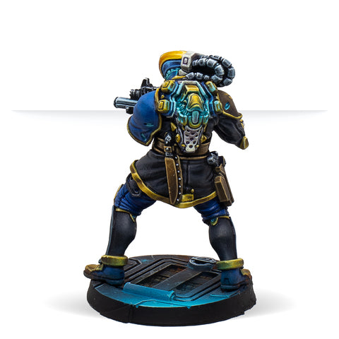 This box includes one miniature of aRaveneye Officer with a Submachine Gun. The regular version of the exclusiveminiature of the Infinity Raveneye book pre-order, and a great addition to yourO-12 force from your O-12 Action Pack (REF: 282005-0826).