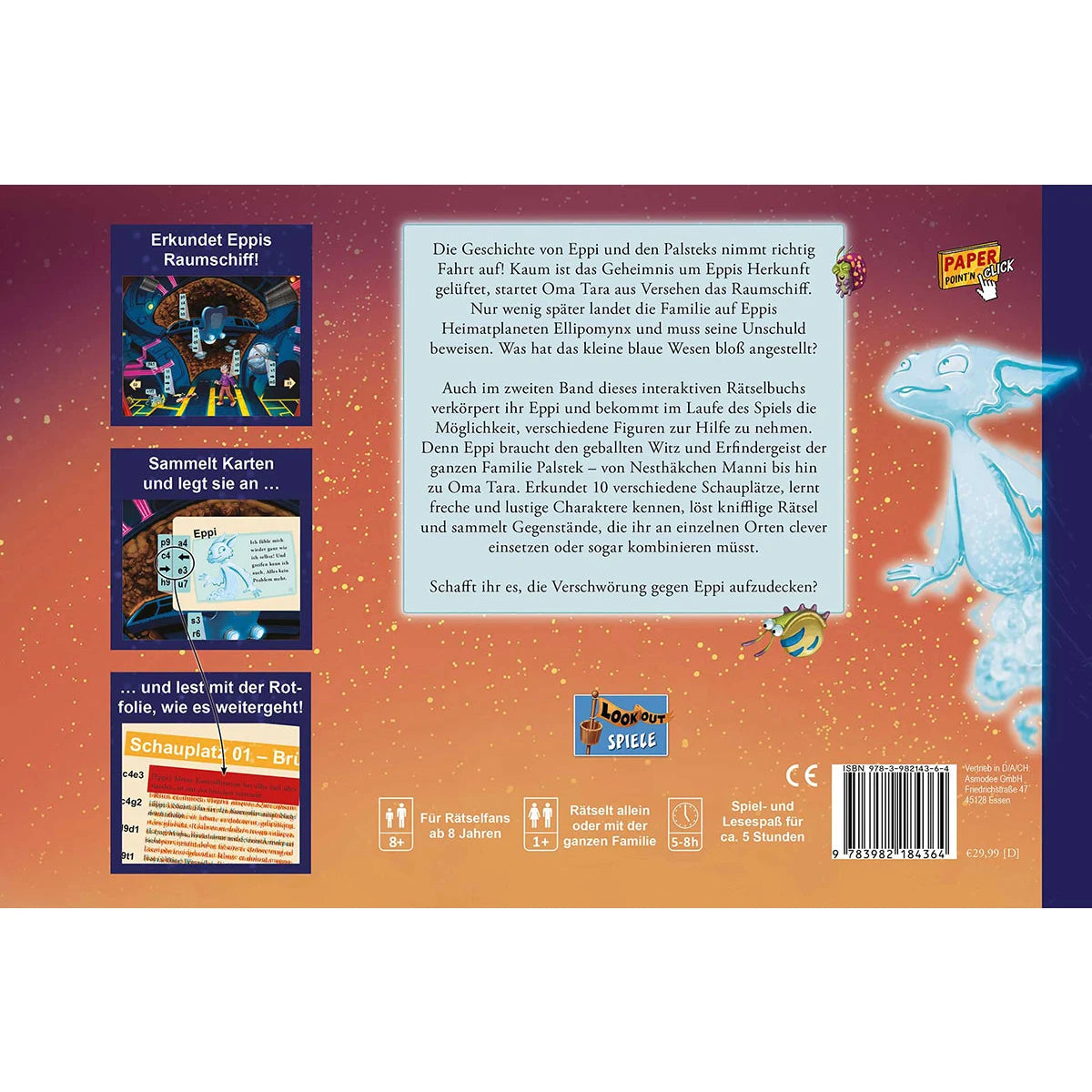 Eppi – Teil 2: Der Schokoladenschmuggel ist ein interaktives Paper Point & Click-Rätselbuch für Familien, aber auch perfekt solo spielbar. In zehn detailreichen Schauplätzen erkundet ihr gemeinsam die Welt, sammelt Gegenstände, löst clevere Rätsel und setzt Fundstücke gezielt oder kombiniert ein – ganz im Stil klassischer Adventures. Mit Witz, Charme und überraschenden Momenten bietet das Buch ein kooperatives Spielerlebnis für Jung und Alt. Ein liebevoll gestaltetes Abenteuer zum Blättern, Staunen und Miträtseln!