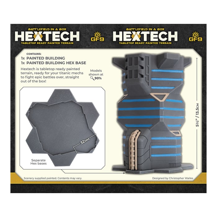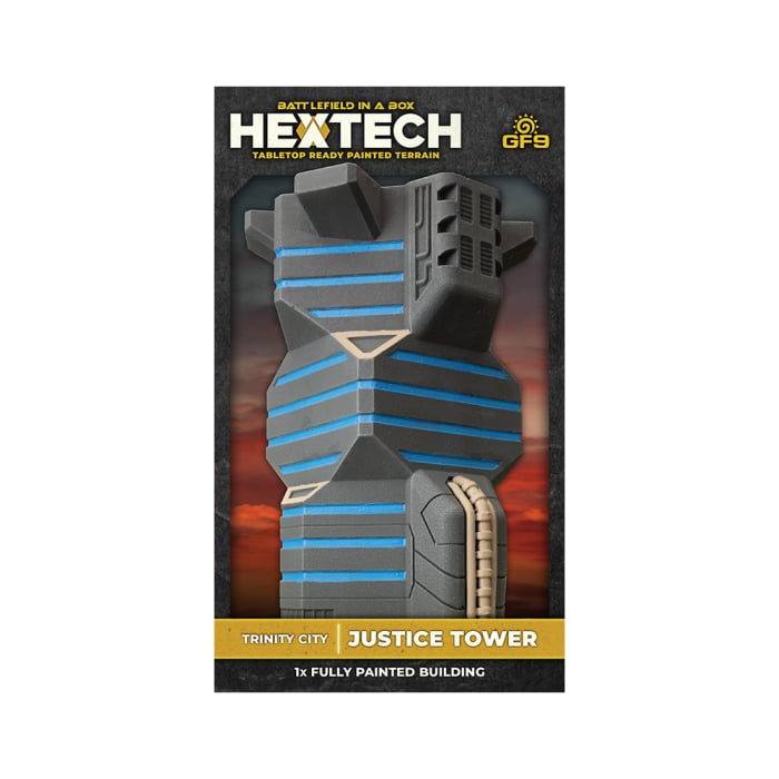 - Contains 1x pre-painted Justice Tower and 1x pre-paintedBuilding Hex Base