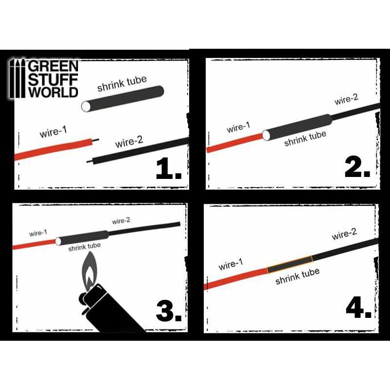 Ein Schrumpfschlauch ist ein flexibler Kunststoffschlauch, der sich bei Wärmeeinwirkung festzieht und zur Verbindung der Kabel zwischen den Kabeln dient. Aufgrund seiner Größe ist es ideal für die Montage von Kabeln von LED-Leuchten. Nach dem Einbau der Schrumpfschlauch, Verwenden Sie ein Feuerzeug, um die Verbindung zu sichern.