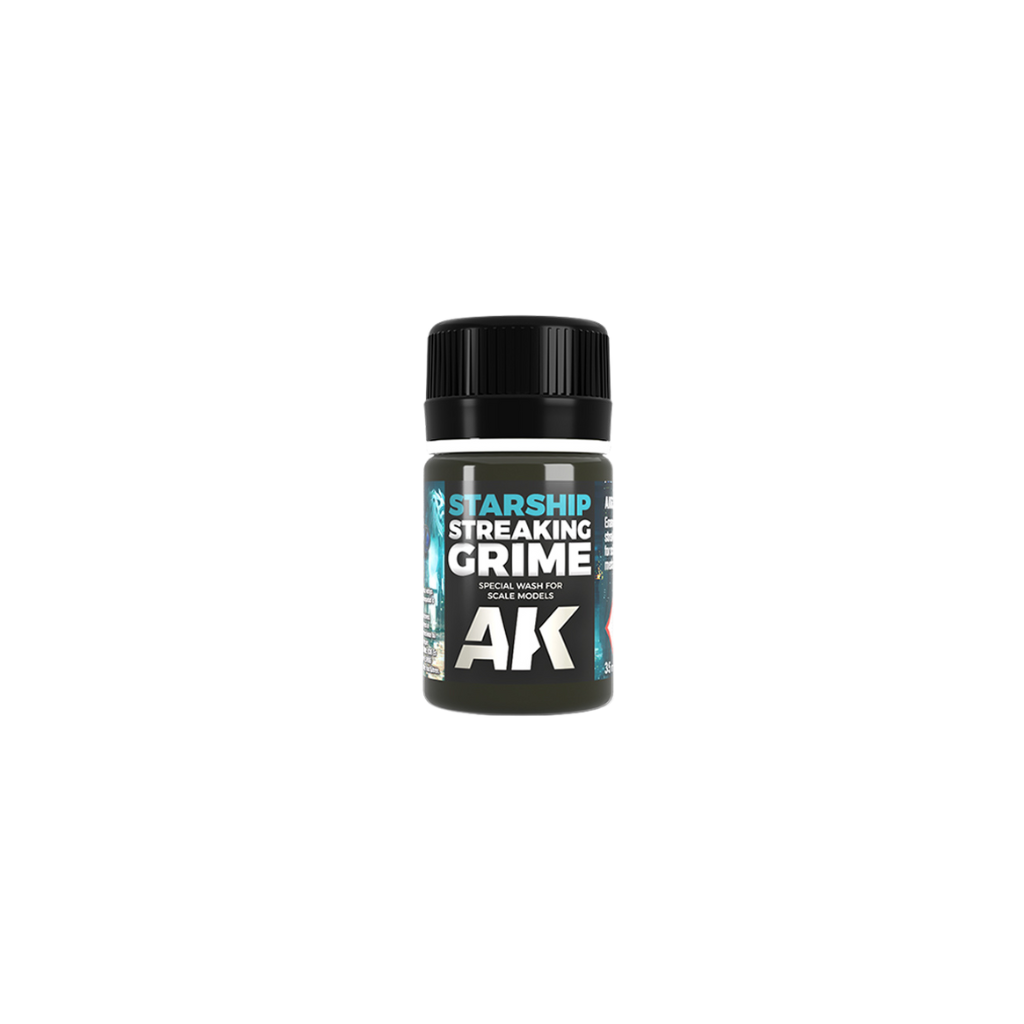 Verwenden Sie diese Farbe, um vertikale Linien oder Ansammlungen von Schmutz mit einem feinen Pinsel zu machen und dann mit einem in White Spirt (AK011 oder AK047) getauchten Pinsel zu verblenden.