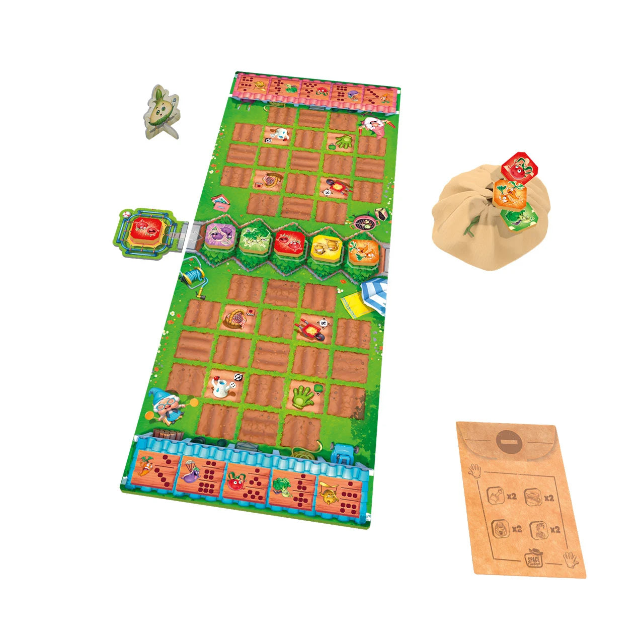 - Strategisches 2-Spieler-Spiel, bei dem Spieler Gemüse in ihrem Garten taktisch platzieren