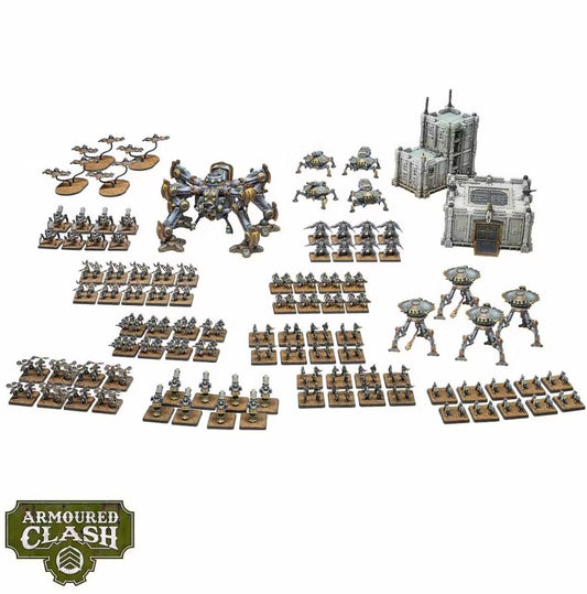 Armoured Clash ist ein spannendes Tabletop-Wargame mit epischen Landschlachten, bei dem hochdetaillierte Miniaturen eingesetzt werden, um Massenschlachten auf der ganzen Welt darzustellen. Jahrhundert des dystopischen Zeitalters angesiedelt ist, werden die Spieler zu Generälen ihrer von der Superwissenschaft angetriebenen Nationen, die sich um Ressourcen und Macht streiten.