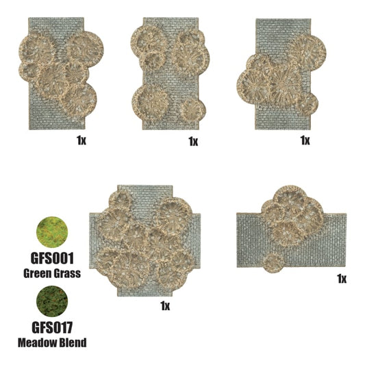 Essentials range of Battlefield in a Box contains all of the most common types of battlefield terrain features to make your tabletop battlefield ready.